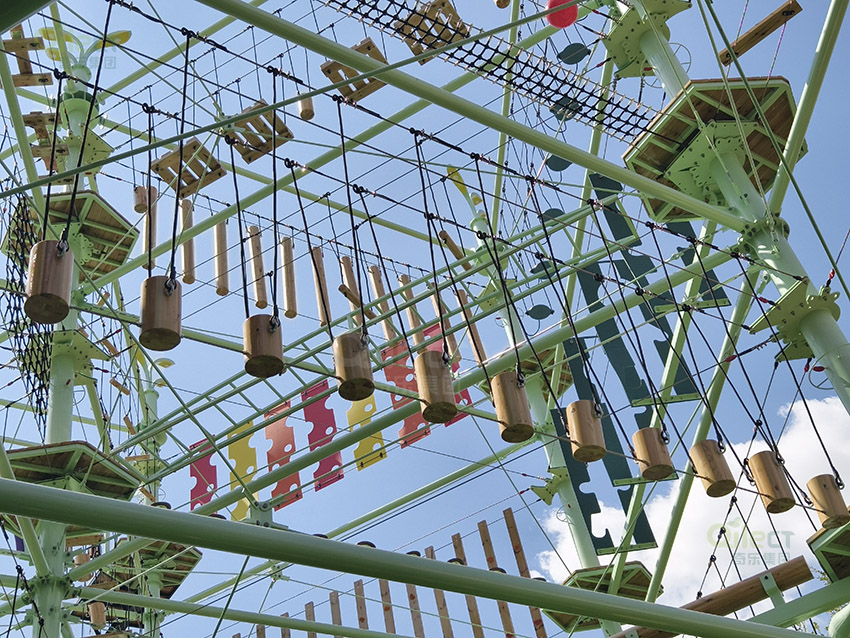 包含忍者叢林、直排吊環(huán)、腰馬合一、一馬平川、垂吊藤椅、奶酪攀巖、騎虎難下、彩虹橋、腳步吊環(huán)、臂力驚人、云羅天網(wǎng)、一鳴驚人、高空速降等18個高難度項目。