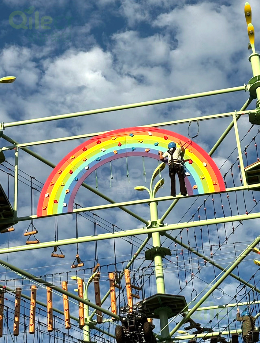 針對6歲以上兒童及初次嘗試的家庭客群,設(shè)置時空網(wǎng)道、蛇形橋、I LOVE YOU、蘑菇橋、阻礙木、茶則滑板、匍匐前進、XIHESHAN、障礙高低樁、蹺蹺板等較低難度項目。
