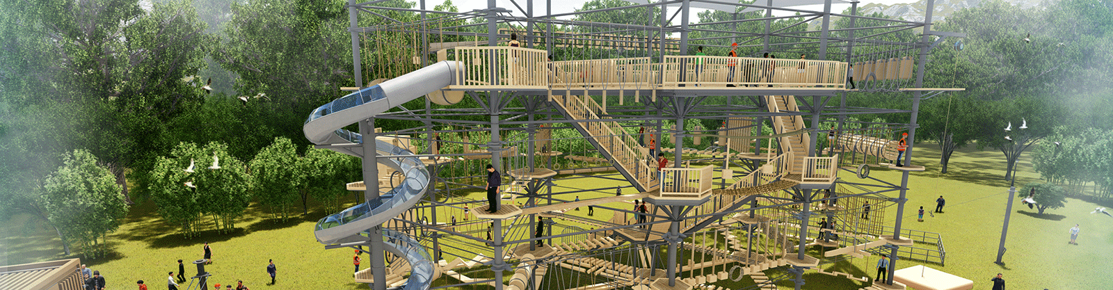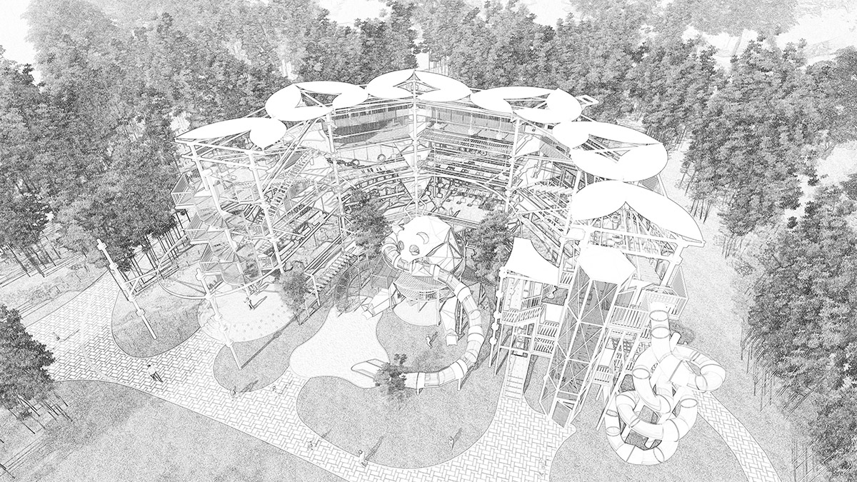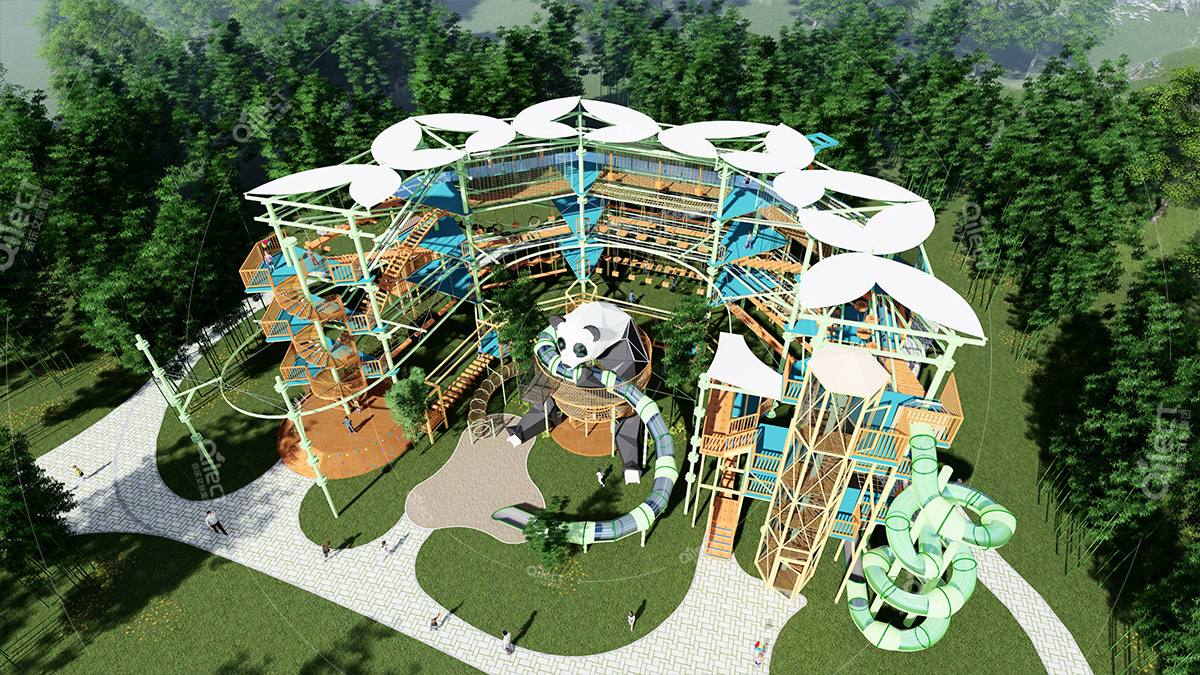 本項目適用于各種親子主題類的樂園,巧妙運用“大灰熊”IP造型設(shè)計,集拓展、探險、滑道、飛索、蹦極、不銹鋼滑梯、攀巖、爬網(wǎng)等46種不同運動體驗的文化主題項目,結(jié)合“大灰熊”IP形象,融入相關(guān)設(shè)計元素,打造差異化的網(wǎng)紅IP主題性運動拓展?fàn)I地綜合體。